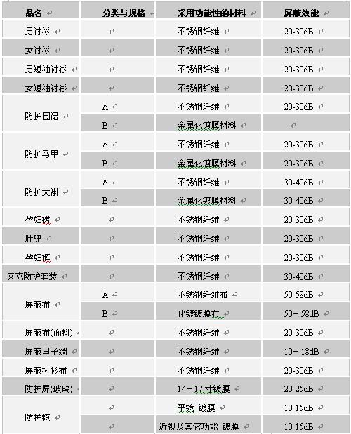 3 常用电磁辐射个体防护产品